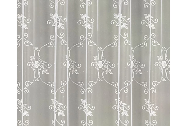 Jemná žakárová záclona s elegantným kvetinovým vzorom ,zakončená do oblúkov v jednofarebnej bielej farbe. Záclona s rozmerom 300×245 cm sa stane krásnou okennou dekoráciou, ktorá navyše poskytne dostatočné súkromie a ochranu pred priamymi slnečnými lúčmi.