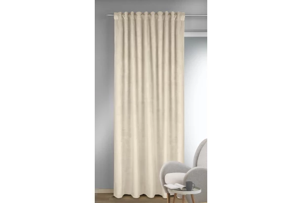 Zatemňovací záves v zamatovo hladkom vzhľade v jednofarebnom krémovo bielom prevedení pôsobí luxusným a elegantným dojmom. Záves perfektne zatieni prenikajúce svetlo, poskytne súkromie a vytvorí útulnú atmosféru. Rozmer 135×245 cm.