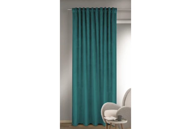 Zatemňovací záves v zamatovo hladkom vzhľade v jednofarebnom petrolejovom prevedení, pôsobí luxusným a elegantným dojmom. Záves perfektne zatieni prenikajúce svetlo, poskytne súkromie a vytvorí útulnú atmosféru. Rozmer 135×245 cm.