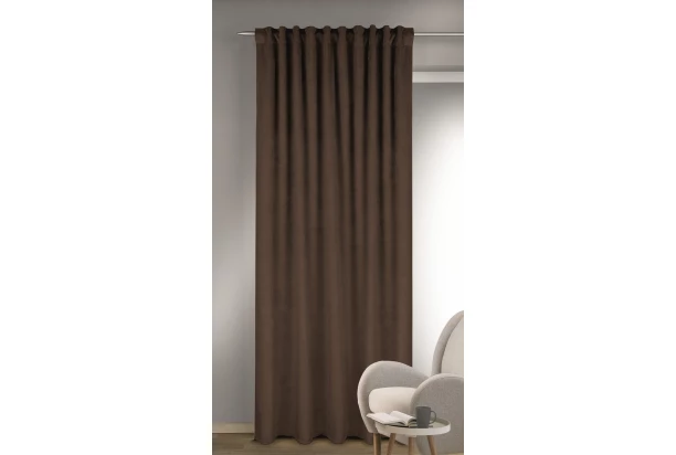 Zatemňovací záves v zamatovo hladkom vzhľade v jednofarebnom hnedom prevedení pôsobí luxusným a elegantným dojmom. Záves perfektne zatieni prenikajúce svetlo, poskytne súkromie a vytvorí útulnú atmosféru. Rozmer 135×245 cm.