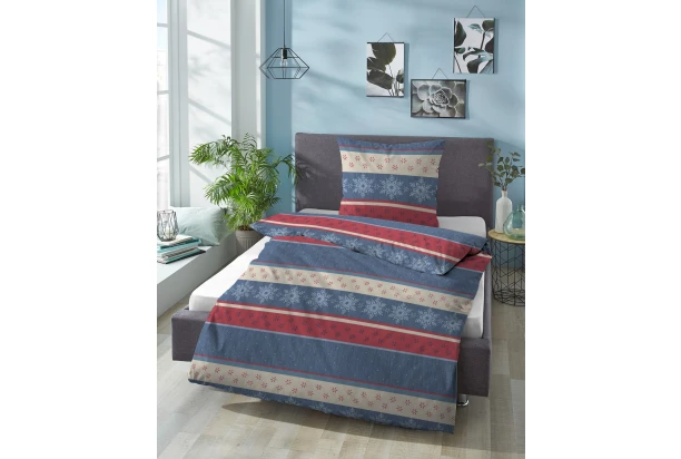 Krásne obliečky z hrejivej a nadýchanej bavlny Biber v modrej, červenej a béžovej farbe s jedinečným vzorom sú ako stvorené na chladné zimné dni.