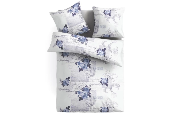 Romantické obliečky s kvetinovým vzorom v modro-fialovom prevedení na bielom podklade, dodajú spálni krásnu atmosféru a zaistia príjemný spánok. Rozmer 140×200 cm.
