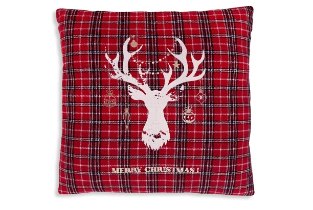 Dekoračný vankúš s károvaným vzorom v červenej farbe s motívom jeleňa a jeho parožím vytvorí vo Vašom domove Vianočnú atmosféru. Vankúš skvele ozdobí pohovku, kreslo alebo posteľ. Rozmer 45×45 cm.