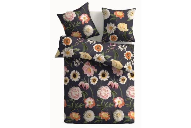 Bavlnené posteľné obliečky v čiernej farbe s elegantným motívom kvetín sa hodia do každej spálne a poskytnú pohodlný spánok.