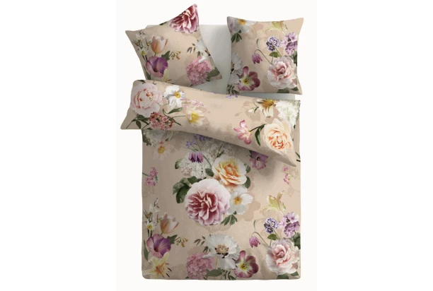Bavlnené posteľné obliečky v béžovej farbe s elegantným kvetinovým motívom rozžiaria každú spálňu a poskytnú pohodlný spánok.