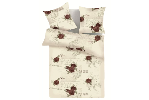 Elegantné obliečky s kvetinovým vzorom ruží v bordovej farbe na krémovom pozadí sú vyrobené z bavlny renforcé, ktorá je špičkou v bavlnenom textile. Je jemnejšia, hebkejšia a príjemnejšia na dotyk, navyše má zvýšené absorpčné vlastnosti, odvádza vlhkosť, je odolnejšia voči oteru a má dlhšiu živostnosť. Tieto posteľné obliečky so zamilovanými nápismi ľahko zmenia nudný vzhľad spálne na lákavý a veselý. Rozmer 140×200 cm.