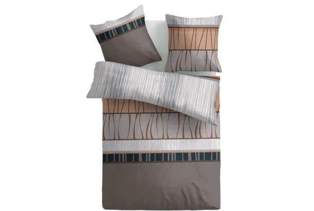 Posteľné obliečky s pruhovaným vzorom sú vyrobené z bavlny renforcé, ktorá je špičkou v bavlnenom textile. Je jemnejšia, hebkejšia a príjemnejšia na dotyk, navyše má zvýšené absorpčné vlastnosti, odvádza vlhkosť, je odolnejšia voči oteru a má dlhšiu živostnosť. Farba šedá/čierna/oranžová.