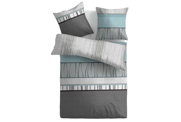 Posteľné obliečky s pruhovaným vzorom sú vyrobené z bavlny renforcé, ktorá je špičkou v bavlnenom textile. Je jemnejšia, hebkejšia a príjemnejšia na dotyk, navyše má zvýšené absorpčné vlastnosti, odvádza vlhkosť, je odolnejšia voči oteru a má dlhšiu živostnosť. Farba tyrkysová/čierna/sivá.