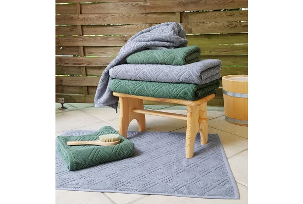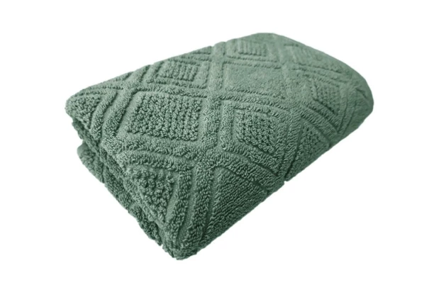 Uterák z modernej kolekcie Mosaik v olivovo zelenej farbe má rozmer 50×100 cm. Je vyrobený z bavlny a je utkaný do kvalitného Zwirn-froté o gramáži 500g/m². Uterák je mimoriadne savý a veľmi príjemný na dotyk. Kockovaného vzoru je docielené vytkávacou technológiou, kedy sa reguluje dĺžka chlpu – a teda aj viditeľných slučiek froté. Uterák pôsobí robustnejším dojmom a hodí sa do každej kúpeľne.