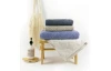 Osuška z modernej kolekcie Mosaik vo farbe holubia modrá má rozmer 67×150 cm. Je vyrobená z bavlny a je utkaná do kvalitného Zwirn-froté o gramáži 500g/m². Osuška je mimoriadne savá a veľmi príjemná na dotyk. Kockovaného vzoru je docielené vytkávacou technológiou, kedy sa reguluje dĺžka chlpu – a teda aj viditeľných slučiek froté. Osuška pôsobí robustnejším dojmom a hodí sa do každej kúpeľne.
