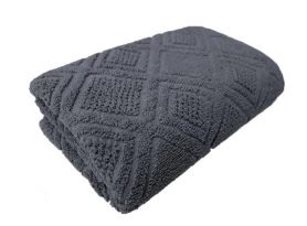 Osuška z modernej kolekcie Mosaik v grafitovo šedej farbe má rozmer 67×150 cm. Je vyrobená z bavlny a je utkaná do kvalitného Zwirn-froté o gramáži 500g/m². Osuška je mimoriadne savá a veľmi príjemná na dotyk. Kockovaného vzoru je docielené vytkávacou technológiou, kedy sa reguluje dĺžka chlpu – a teda aj viditeľných slučiek froté. Osuška pôsobí robustnejším dojmom a hodí sa do každej kúpeľne.