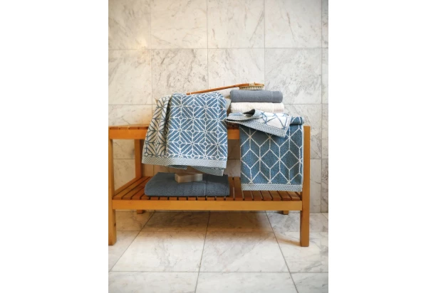 Uterák o rozmere 50×100 cm vo farbe Niagara modrá z modernej kolekcie Design Raute s grafickým abstraktným vzorom v tvare kosoštvorcov je utkaný z veľmi jemného Walk-froté s gramážou 500g/m² technológiou Jacquard. Nadčasový dizajn v škandinávskom štýle dodá kúpeľni príjemný šmrnc. Uterák je vyrobený z bavlny a je mimoriadne savý a hebký na dotyk.