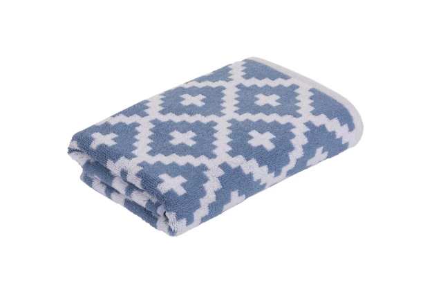 Uterák o rozmere 50×100 cm vo farbe Niagara modrá z modernej kolekcie Graphics Raute v dizajne škandinávskeho grafického vzoru v tvare kosoštvorcov je utkaný z veľmi jemného zwirn-froté s gramážou 500g/m² technológiou Jacquard. Mimoriadne savý a hebký uterák je vyrobený z bavlny a pôsobí robustným dojmom.