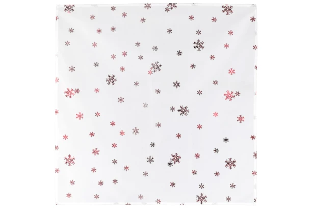 Elegantný biely obrus na stôl so zimným motívom červených snehových vločiek navodí v kuchyni či jedálni príjemnú sviatočnú atmosféru a pohodu nielen pri štedrovečernej večeri. Obrus je nielen krásny, ale aj praktický bytový doplnok, ktorý poskytne ochranu stola pred poškriabaním a ušpinením. Rozmer 80×80 cm.