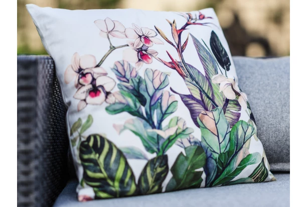 Dekoračný vankúš z príjemného zamatu je hladký a mäkký na dotyk. Vankúš s dekorom orchidey a zelených listov poskytne nekončiace maznanie a leňošenie pri televízii a navyše vnesie do interiéru nádych luxusu. Rozmer 45×45 cm.