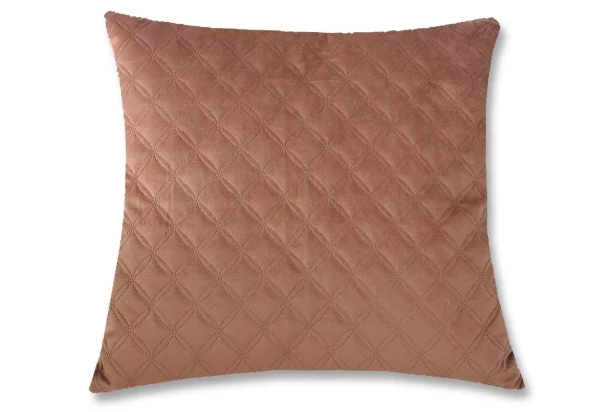 Mäkký a zamatovo hebký dekoračný vankúš v hnedej farbe s elegantným vzorom kosoštvorcov, zútulni Váš domov. Rozmer 45×45 cm.