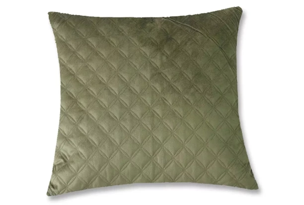 Mäkký a zamatovo hebký dekoračný vankúš v zelenej farbe s elegantným vzorom kosoštvorcov zútulní Váš domov. Rozmer 45×45 cm.