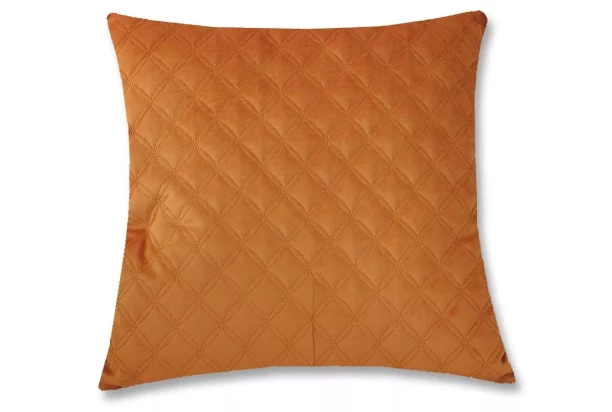 Mäkký a zamatovo hebký dekoračný vankúš v oranžovej farbe s elegantným vzorom kosoštvorcov zútulnia Váš domov. Rozmer 45×45 cm.