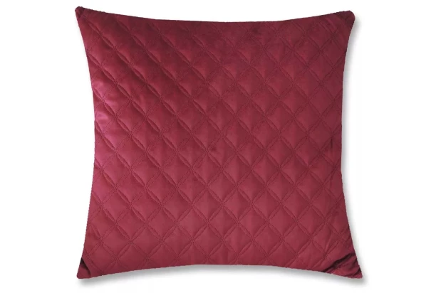Mäkký a zamatovo hebký dekoračný vankúš vo vínovej farbe s elegantným vzorom kosoštvorcov zútulní Váš domov. Rozmer 45×45 cm.