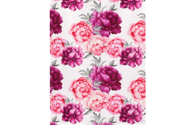 Behúň na stôl s kvetinovým motívom ružových pivoniek vnesie do Vášho domova jarnú náladu a pohodu. Behúň na rozdiel od obrusu zakryje len prostrednú časť stolovej dosky, ale aj tak poskytne čiastočnú ochranu stola pred poškriabaním a ušpinením. Rozmer 150×40 cm.