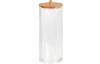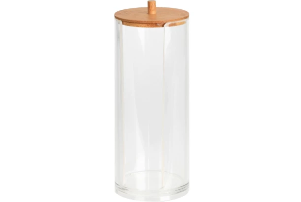 Kúpeľňový oválny zásobník na vatové tampóny či iné kozmetické doplnky je vyrobený z plastu. Nádoba má navyše praktické bambusové veko s rukoväťou. Rozmer 7×18,5 cm.