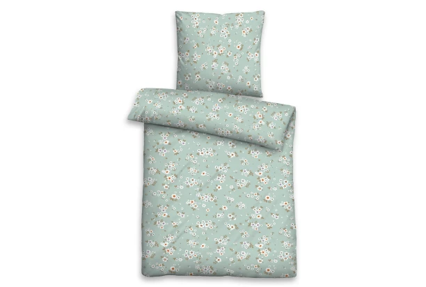 Priedušné a jemne lesklé obliečky z bavlneného saténu zaujmú svojim elegantným kvetinovým dizajnom v zelenom prevedení. Obojstranné saténové posteľné obliečky sú mäkké a príjemné k pokožke, vďaka čomu sa dokonale vyspíte. Rozmer 140×200 cm..