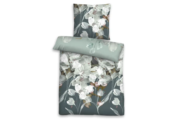 Priedušné a jemne lesklé obliečky z bavlneného saténu zaujmu svojim kvetinovým vzorom. Posteľné obliečky v mätovo zelenom prevedení sú mäkké a príjemné k pokožke. V týchto saténových obliečkach sa dokonale vyspíte. Rozmer 140×200 cm.