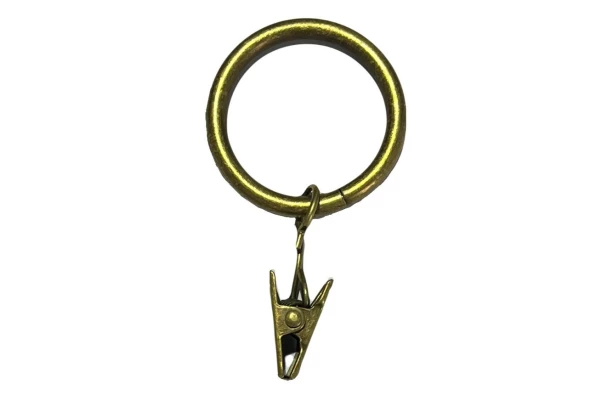 Sada (10 ks) krúžkov so žabkami na garnižu v prevedení zlatej antiky. Určené pre záclonové tyče s priemerom 16 mm.