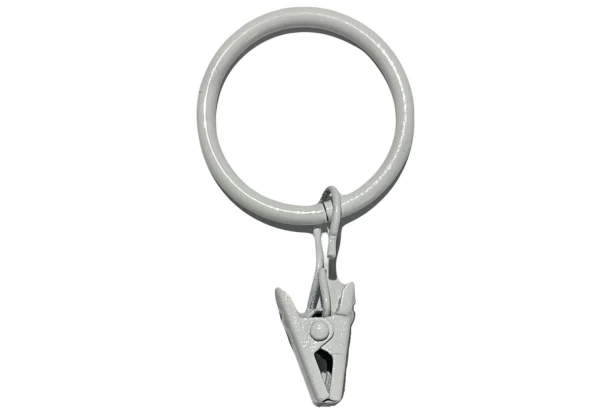Sada (10 ks) krúžkov na garnižu so žabkou a zatváracím háčikom v bielej lesklej farbe. Určené pre záclonové tyče s priemerom 16 – 20 mm.