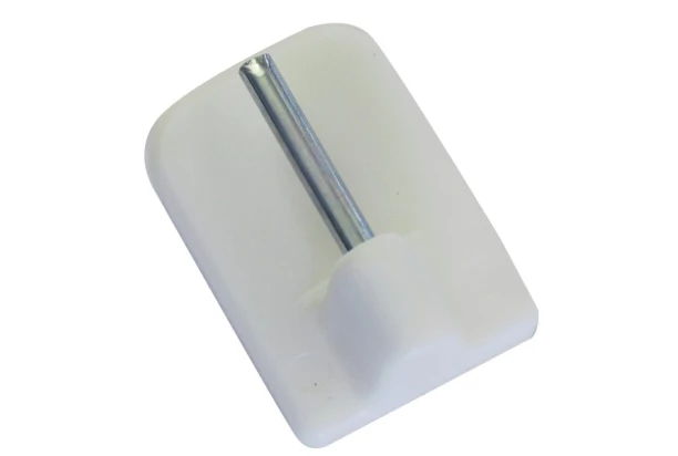 Biele samolepiace háčiky s oceľovým čapom k vitrážnej tyči. Balené po 4 kusoch.