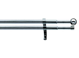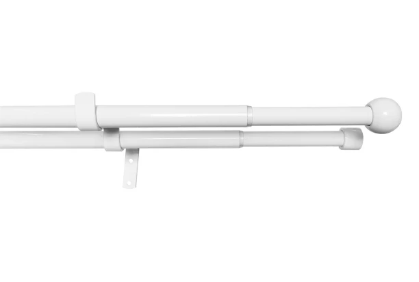 Kovová dvojradová garniža s nastaviteľnou dĺžkou 200–350 cm v bielom lesklom prevedení a guľatou koncovkou. Priemer 16/19 mm. Ploché nosníky a montážny materiál sú súčasťou dodávky.