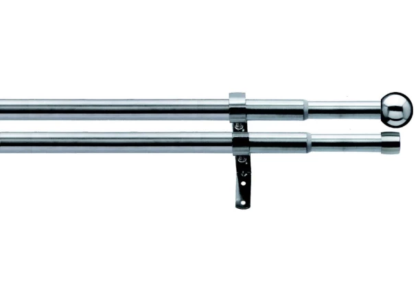 Kovová dvojradová garniža s nastaviteľnou dĺžkou 120–230 cm v prevedení ušľachtilá oceľ a guľatou koncovkou. Priemer 16/19 mm. Ploché nosníky a montážny materiál sú súčasťou dodávky.