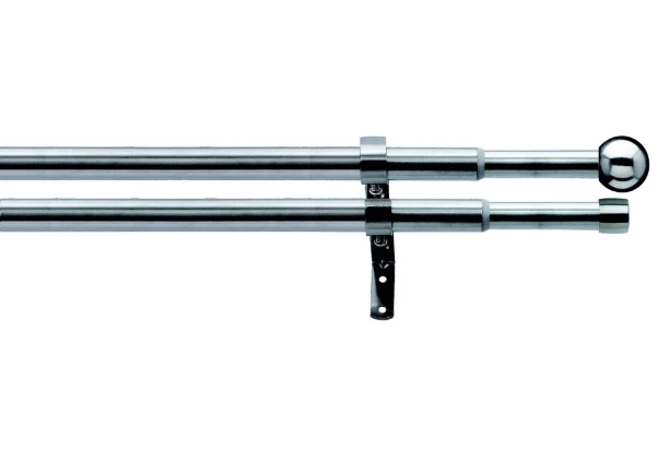 Kovová dvojradová garniža s nastaviteľnou dĺžkou 200–350 cm v prevedení ušľachtilá oceľ a guľatou koncovkou. Priemer 16/19 mm. Ploché nosníky a montážny materiál sú súčasťou dodávky.