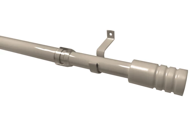 Kovová šedo-béžová garniža s priemerom 19 mm, roztiahnuteľná 135 – 225 cm. Dodávané vrátane plochých nosníkov a montážného príslušenstva na skrutkovanie na okenné krídlo.