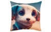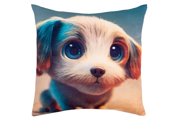 Dekoračný vankúšik s roztomilým psím mláďatkom, ktoré vyzerá, ako by vyskočilo priamo z animovaného filmu, ozdobí Vašu pohovku, posteľ či stoličku originálnym a štýlovým spôsobom. Dizajn si zamilujú hlavne deti. Rozmer 35×35 cm.