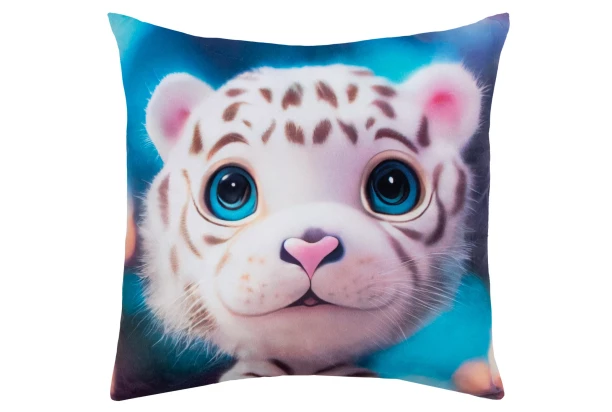 Dekoračný vankúšik s roztomilým bielym tigriím mláďatkom, ktoré vyzerá, ako by vyskočilo priamo z animovaného filmu, ozdobí Vašu pohovku, posteľ či stoličku originálnym a štýlovým spôsobom. Dizajn si zamilujú hlavne deti. Rozmer 35×35 cm.