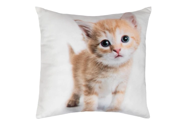 Dekoračný vankúšik je skvelým doplnkom pre Váš gauč, posteľ alebo kreslo. Vankúš zvýrazní Váš láskyplný vzťah ku mačkám a prinesie do Vášho interiéru pohodu a radosť. Na povrchu vankúšika je vytlačený realistický a živý obrázok roztomilého mačiatka, ktorý zaujme a poteší každého milovníka a majiteľa týchto domácich maznáčikov. Rozmer 25×25 cm.
