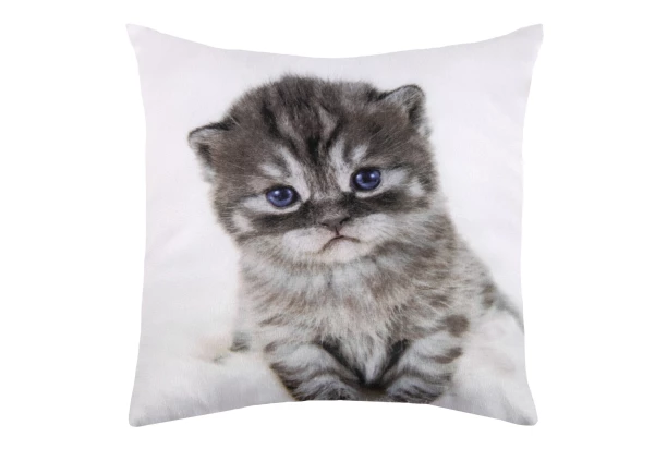 Dekoračný vankúšik je skvelým doplnkom pre Váš gauč, posteľ alebo kreslo. Vankúš zvýrazní Váš láskyplný vzťah ku mačkám a prinesie do Vášho interiéru pohodu a radosť. Na povrchu vankúšika je vytlačený realistický a živý obrázok roztomilého mačiatka s modrými očami, ktorý zaujme a poteší každého milovníka a majiteľa týchto domácich maznáčikov. Rozmer 25×25 cm.