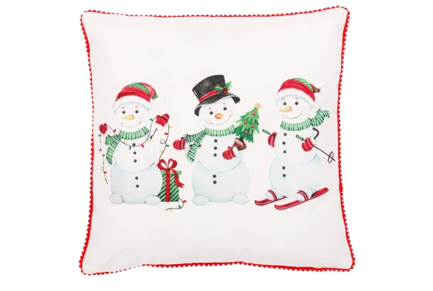 Dekoračná obliečka na vankúš s rozmerom 45×45 cm je ideálna pre štandardné vankúše. Obliečka s paspulkou je vyrobená z polyesteru, ktorý má vzhľad zamatu, a preto je jeho povrch hebký na dotyk. Tradičný vianočný motív snehuliaka vnesie do každého interiéru sviatočnú náladu.