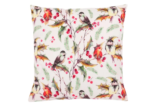 Dekoračná obliečka na vankúš o rozmere 45×45 cm je ideálna pre štandardné vankúše. Obliečka je vyrobená z polyesteru, ktorý má vzhľad zamatu, a preto je jeho povrch hebký na dotyk. Zimný vianočný motív vtáčikov vnesie do každého interiéru sviatočnú atmosféru a veselú náladu.