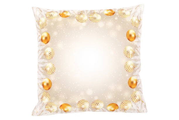 Dekoračná obliečka na vankúš o rozmere 45×45 cm je ideálna pre štandardné vankúše. Obliečka je vyrobená z polyesteru, ktorý má vzhľad zamatu, a preto je jeho povrch hebký na dotyk. Motív vianočných gulí na zlatom podklade vnesie do každého interiéru sviatočnú atmosféru a zimnú pohodu.