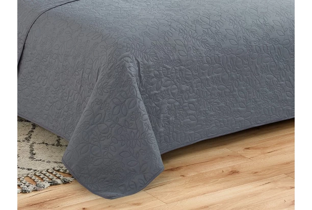 Prikrývka cez posteľ v šedej farbe so vzorom lístočkov je elegantným a štýlovým doplnkom do každej spálne. Prikrývka o rozmere 220×240 cm je vhodná pre všetky typy postelí a je možné ju použiť ako dekoráciu alebo ochranu postele.