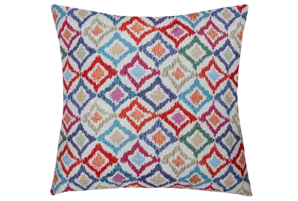 Tento dekoračný vankúš s rozmerom 45×45 cm s pestrofarebným vzorom je skvelý doplnok, ktorý oživí Váš interiér a dodá mu zaujímavý šmrnc. Jasné farby a hravý dizajn zaujmú každého, kto vstúpi do miestnosti. Vankúš je možné použiť ako dekoratívny doplnok do obývacej izby, spálne alebo detskej izby.