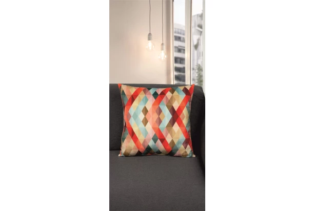 Tento dekoračný vankúš s rozmerom 45×45 cm s pestrofarebným vzorom je skvelý doplnok, ktorý oživí Váš interiér a dodá mu zaujímavý šmrnc. Jasné farby a hravý dizajn zaujmú každého, kto vstúpi do miestnosti. Vankúš je možné použiť ako dekoratívny doplnok do obývacej izby, spálne alebo detskej izby.