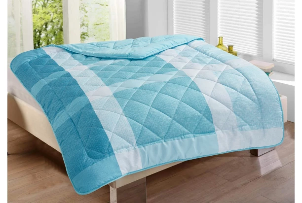 Ľahká a priedušná letná prikrývka je ideálna pre pohodlný spánok počas teplých nocí. Perina má obojstranný dizajn v tyrkysovej farbe – predná strana má moderný geometrický vzor, zadná strana je jednofarebná. Rozmer 140×200 cm.