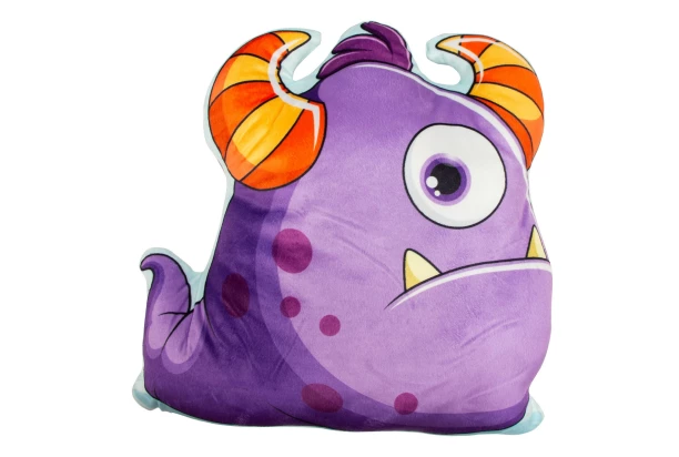 Vankúš v tvare príšerky vo fialovej farbe je roztomilý a veselý doplnok do detskej izby. Môže slúžiť ako pohodlný vankúš na spanie alebo ako hračka či dekorácia, ktorá poteší každé dieťa.