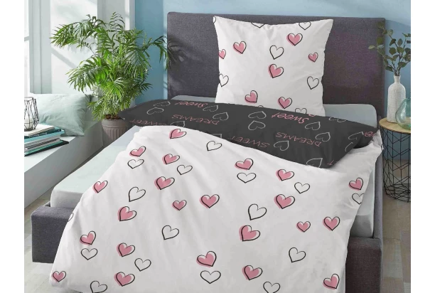 Bavlnené-linónové posteľné obliečky Vás svojim zamilovaným vzorom srdca pozývajú k útulným nociam. Pútavý dizajn oživí spálňu a zaistí skutočné pocity šťastia. Okrem krásneho vzhľadu zaujmu obojstranné obliečky svojou kvalitou a jednoduchou údržbou. Spánok v týchto priedušných a mäkkých obliečkach bude vždy pohodlný a bezstarostný. Rozmer 140×200 cm.