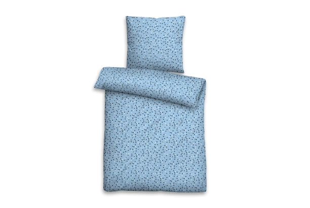 Posteľné obliečky seersucker z bavlny je špeciálne upravená tkanina, ktorá má typický jemne zvlnený povrch. Je príjemná na dotyk a zaisťuje optimálny komfort pri spaní. Seersuckerová štruktúra je ideálna pre horúce letné noci, pretože umožňuje dobrú cirkuláciu vzduchu. Modré obliečky s elegantným bodkovaným dizajnom okamžite dodávajú vašej spálni šarm a štýl. Rozmer 140×200 cm.