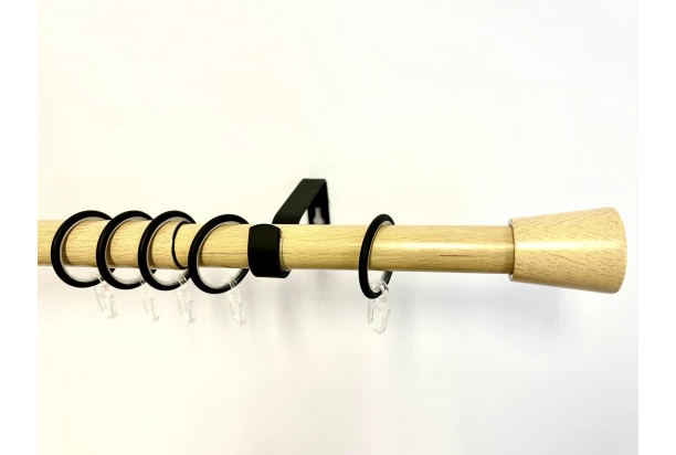 Roztiahnuteľná súprava s nastaviteľnou dĺžkou 100–190 cm a priemerom 22/25 mm, v prevedení imitácie buk. Komplet vrátane koncoviek, nosníkov a montážneho materiálu. Bez krúžkov.
