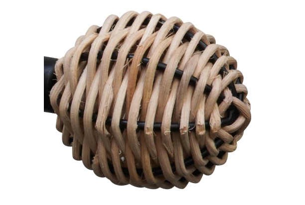 Kovová záclonová súprava s nastaviteľnou dĺžkou 200–350 cm v prevedení čierna matná a guľatou ratanovou koncovkou. Priemer 16/19 mm. Ploché nosníky a montážny materiál sú súčasťou dodávky.